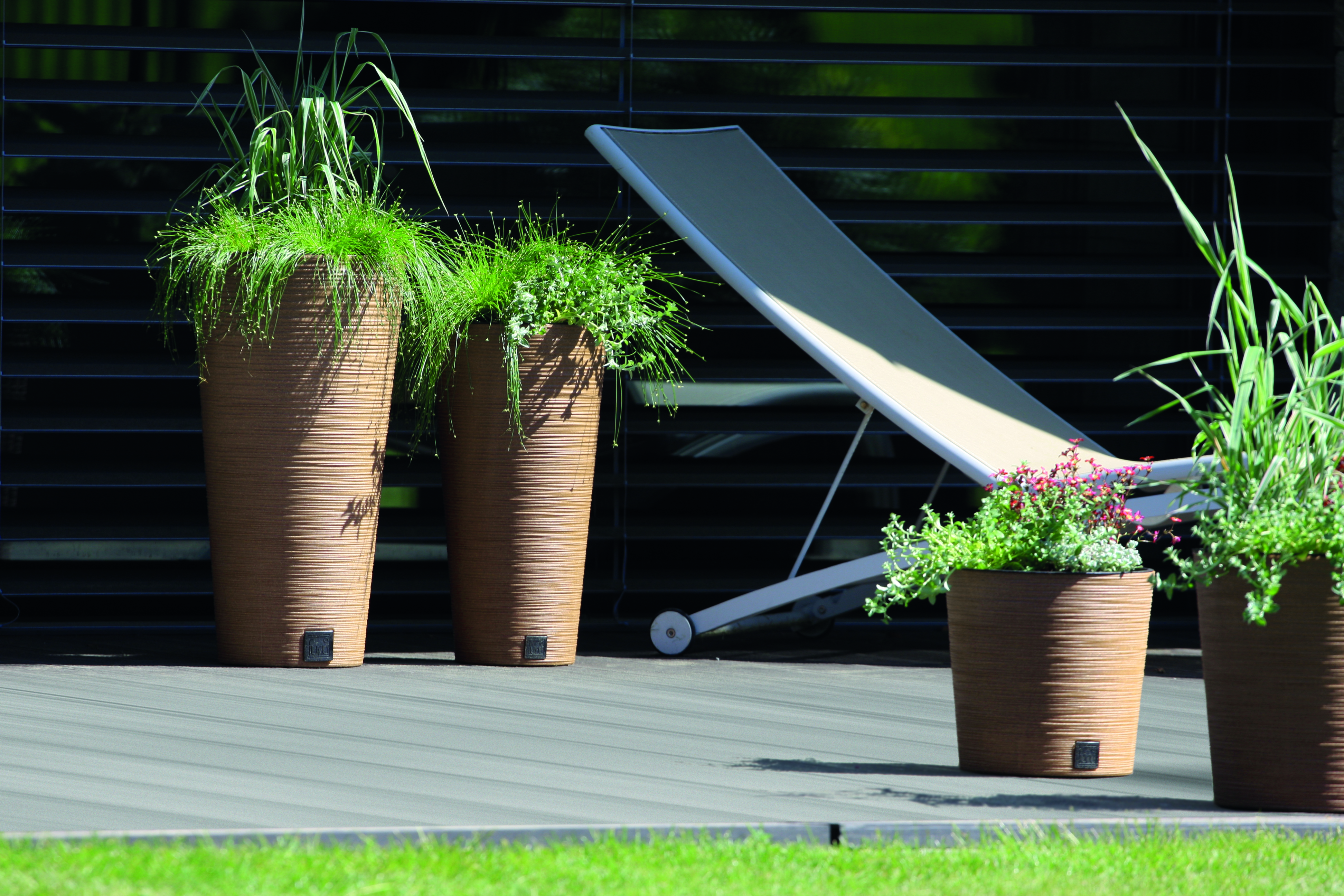 Plants make excellent sustainable furniture but it is very important to know how to choose the right pot right pot. In this sense, the new Eco Wood collection encompasses all the best there is. The production of plastic-based, completely recycled and recyclable, is combined with natural wood waste, obtained from following its processing. Our proposal incorporates new shapes and colours and contains up to 33% of natural wood, facilitating its biodegradability.